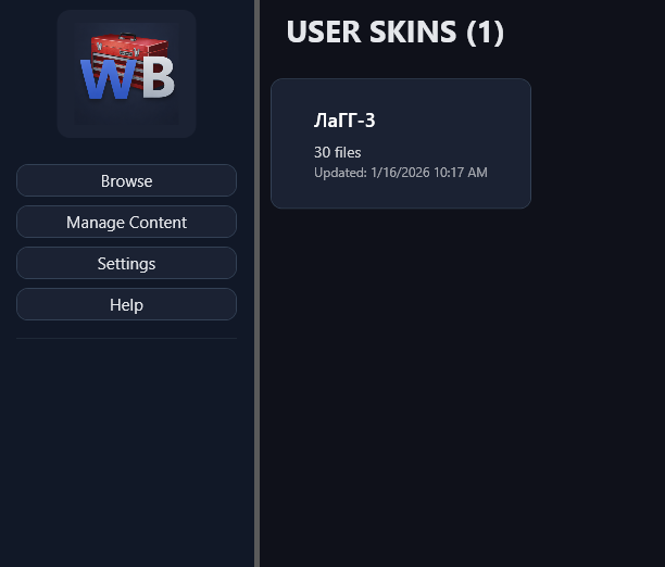 WarBox is a small desktop tool that makes installing and managing War Thunder skins easier.